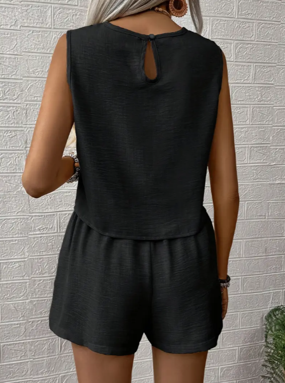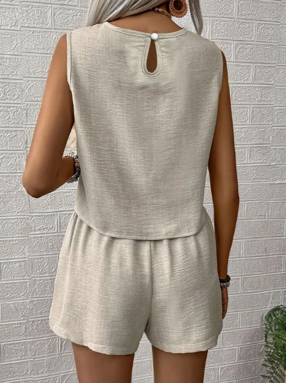 Léger et facile à porter, cet ensemble deux pièces pour femme est conçu pour l’été. Il se compose d’un top droit sans manches et d’un short fluide à taille haute. Sa coupe épurée et son tissu doux en font un incontournable pour les journées chaudes, à la maison ou en extérieur.