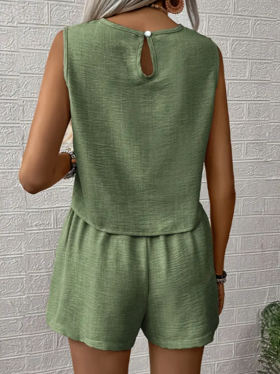 Ensemble femme estival deux pièces sans manches avec top droit et short fluide