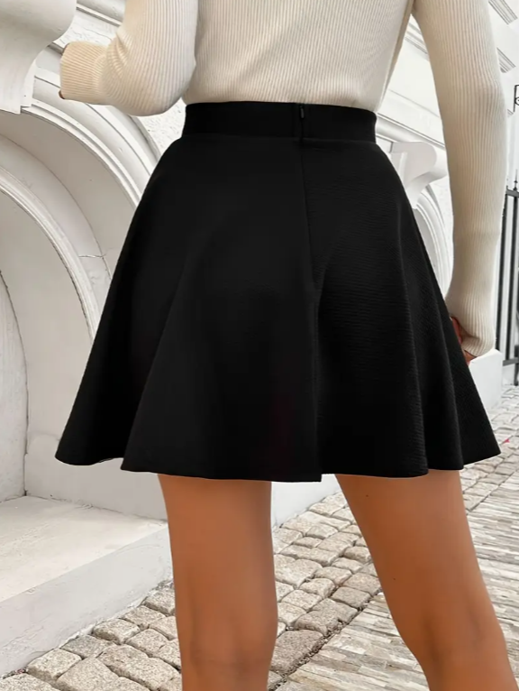 Jupe courte évasée taille haute unie – jupe noire élégante pour femme