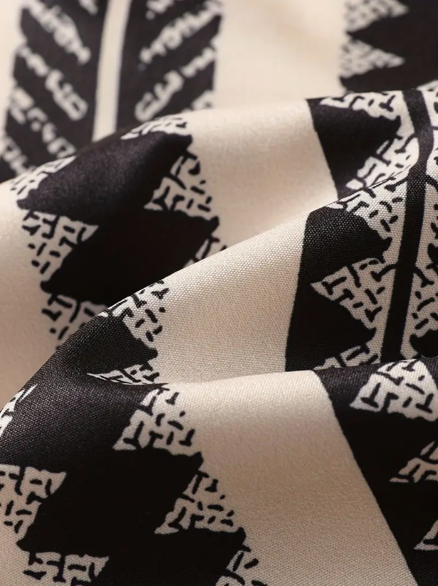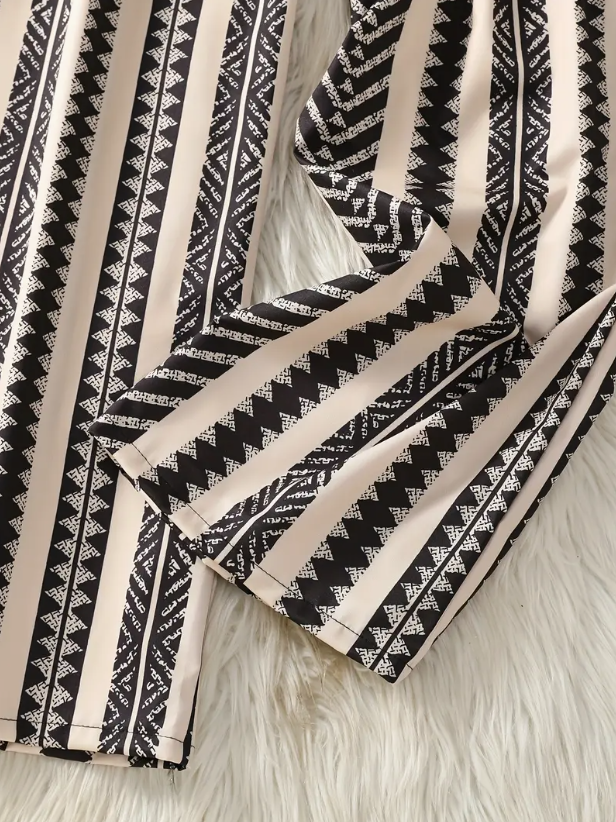 Ce pantalon ample pour femme associe style décontracté et confort quotidien. Son imprimé à rayures noires et blanches d’inspiration ethnique crée un effet visuel structuré, tandis que la coupe large assure une grande liberté de mouvement. Parfait pour les journées détendues, les sorties ou une tenue estivale légère.